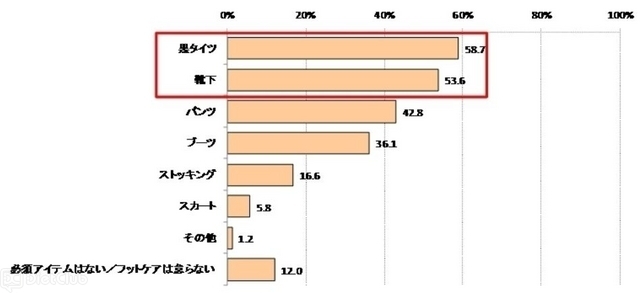 このほか、『足のケア不足を隠すための冬の必須アイテムは』を尋ねたところ、1位は「黒タイツ」(58.7%)、2位は「靴下」(53.6%)、3位は「パンツ」(42.8%)、4位は「ブーツ」(36.1%)、5位は「ストッキング」(16.6%)という結果に。しかし、そのような工夫もむなしく、約6割が「冬にフットケアを怠ったことが原因で失敗してしまった、恥ずかしかったエピソード」があるという。