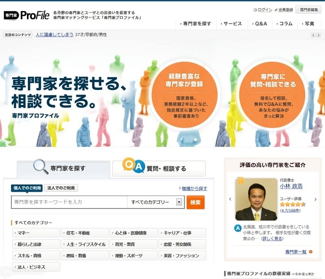 なお、エンファクトリーの「専門家プロファイル」では、弁護士やファイナンシャルプランナーなど、全130職種1,100名(2013年10月実績)におよぶ専門家のノウハウや知見を、ネット上で購入・決済することができる。