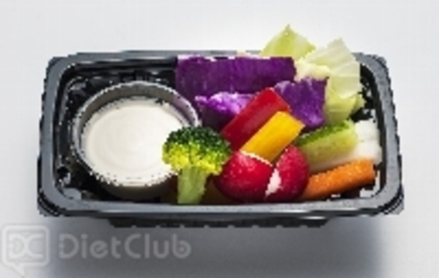 彩りの良い生野菜に、アンチョビとガーリックを効かせたバーニャカウダソースが添えられている。生野菜の種類は、赤パプリカ、黄パプリカ、ラディッシュ、大根、きゅうり、人参、キャベツ、紫キャベツ、ブロッコリーの9種類。