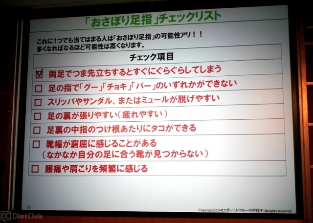 以下では、「ハイヒール猫背、ハイヒール不調の原因“おさぼり足指”」と題された中村氏のセミナーで紹介されていた情報を抜粋する。
