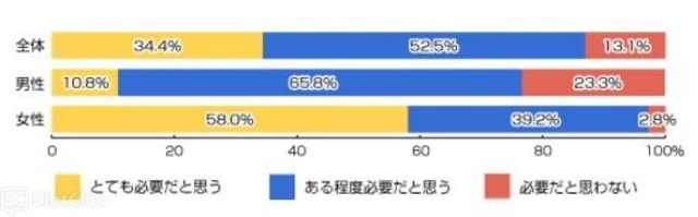ライフメディアのリサーチバンクが、4月18日から24日の間、10代~60代の男女を対象に行った「紫外線に関する調査」(有効回答:1,200名)で、『あなたは紫外線対策が必要だと思いますか?』と質問したところ、86.9%の人が「必要だと思う」と回答したという。