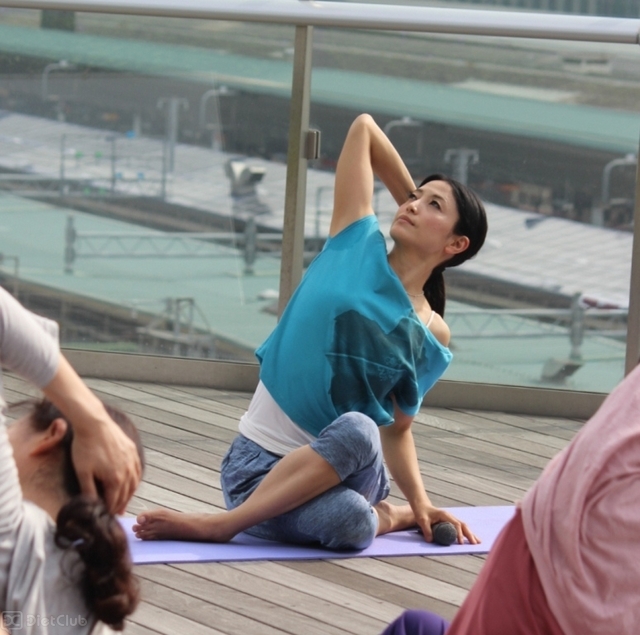 ヨガの指導を担当したのは、ヨガインストラクターとして19年の指導歴をもつNAO氏。NAO氏と参加者たちは、快晴の青空の下、太陽の温かさを感じながら、東京駅や丸の内のビル群を背景に、約1時間ほどヨガを行った。