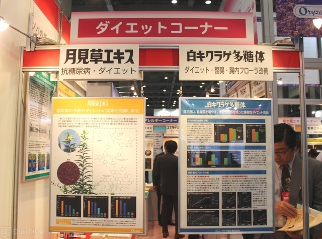 このほか、糖尿病の予防やダイエットに向くエキスや食品を紹介しているブースもあり、来場者たちは、各ブースに立ち寄って展示物を手にとったり、試食している人もいた。