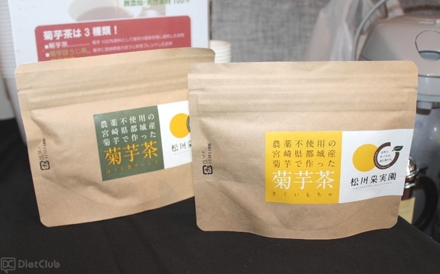 展示品の中で目を引いたのは、宮崎県産の「菊芋」を使った商品。菊芋には、糖の吸収を抑制し、腸内環境を整える働きがあるといわれているイヌリン(ごぼうなどにも多く含まれている多糖類の一種)が豊富らしく、ダイエッターや血糖値が気になる人向けの商品として展開していく予定だという。