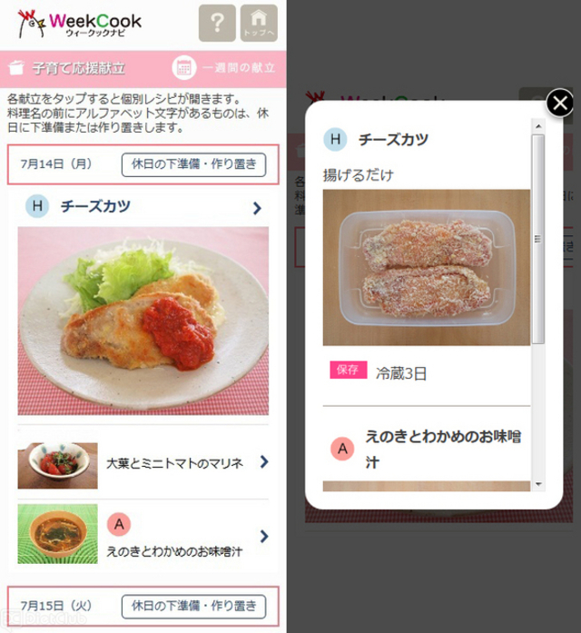 パナソニックは、平日1週間分の夕食の献立を、休日1時間で準備し平日10分で調理する働く人向け食生活提案サイト『ウィークックナビ』で、7月10日から、スマートフォンに最適化したサイトや1~2人用「ワンプレート」コースのサービスを順次リリースする。
