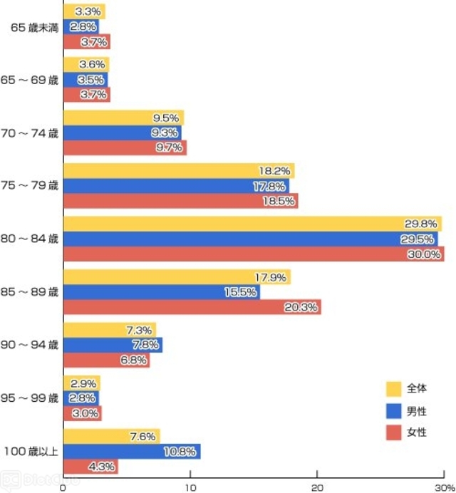 何歳まで生きたいか尋ねたところ、男女とも「80-84歳」とした人が多かった。
