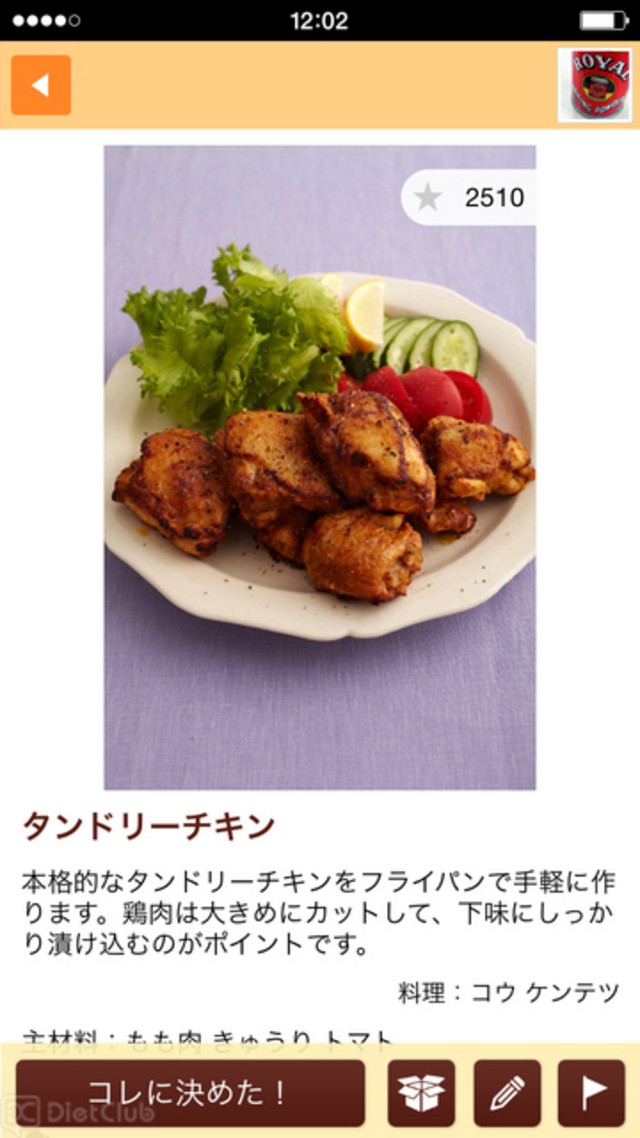 レシピ詳細画面にある「コレに決めた!」ボタンを押せば、メイン画面のタイムラインにライブ配信される。無料会員登録をしてログインすれば、そのレシピは保存され、BOXアイコンから閲覧できる。保存したレシピは「コレに決めた!BOX」に格納される。保存できるレシピ数は32件だが、月額300円の有料メニューに登録すると、保存件数が1,000件になり、更にBOX内検索やメモ・フラグ機能が利用できるようになる。