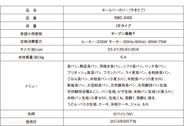 タイガー魔法瓶は、糖質が少ない大豆粉を使った「大豆粉食パン」コース、塩分ゼロの「無塩食パン」コースを新搭載したコンパクトボディの『ホームベーカリー<やきたて>KBC-S100型』を8月下旬に発売する。