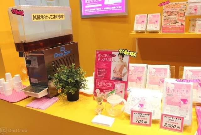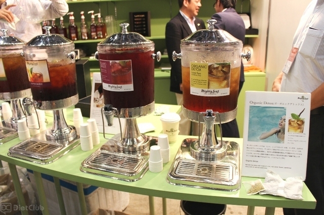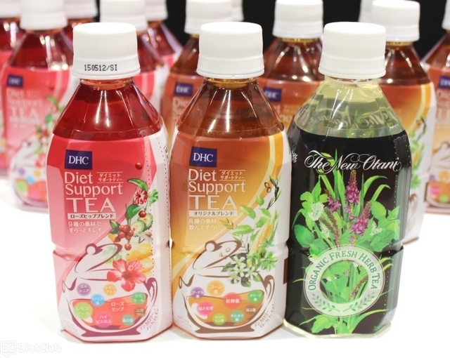 また、スムージーの次に多かったのはハーブティーで、化粧品・健康食品メーカーのDHCが提供するペットボトルタイプのハーブティー「ダイエットサポートティー」が展示されていた。