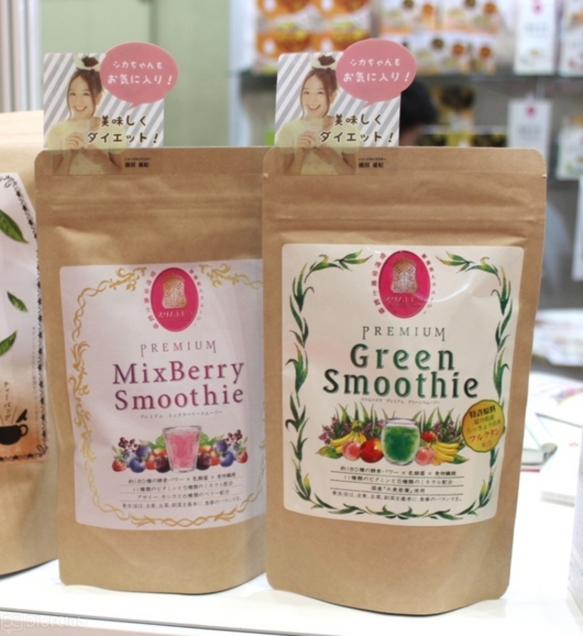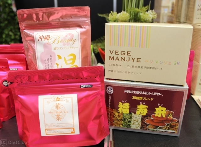 このほか、ミント、レッドクローバーの花、タンポポ、ゴボウの根などがブレンドされた「オーガニック&デトックスハーブティー」や、39種類のハーブと植物酵素が配合されている植物酵素ダイエット茶「ベジマンジェ39」という商品もあった。
