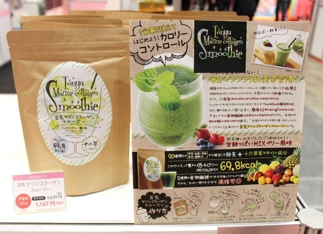 会場内でよく目にしたのは、ここ数年の間、注目を集め続けている「粉末スムージー」。いまや定番ともいえる「グリーンスムージー」をはじめ、栄養価が高いことで知られている「アサイー」を使ったスムージーもあれば、100種類以上の植物発酵エキスを配合したミックスタイプのものもあった。
