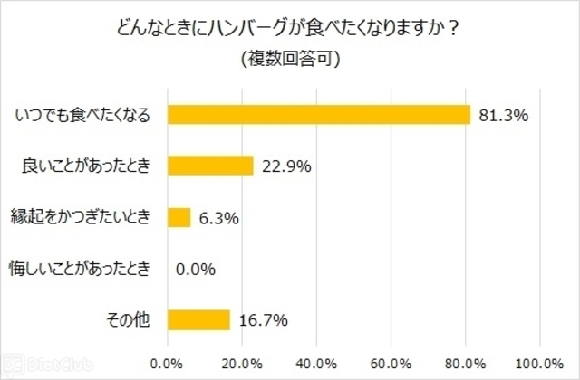 同協会が、9月5日~18日に、同協会会員48人に実施した、ハンバーグに関する意識調査アンケートによると、約23%の人が「良いことがあったときにハンバーグを食べたくなる」と回答している。また、ハンバーグにまつわるエピソードでは、ハンバーグが家族団らんの思い出やおふくろの味として、しあわせな食卓の記憶とともに存在していることが伺える結果となっている。