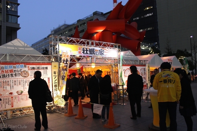 同イベントは、宮城県産の殻付き牡蠣を提供する、牡蠣小屋「宮城 牡蠣の家」をアピールするために行われたもの。