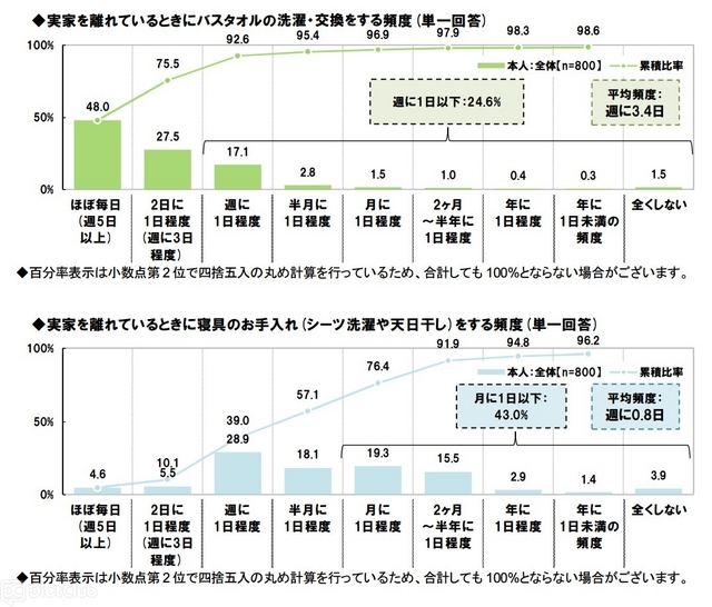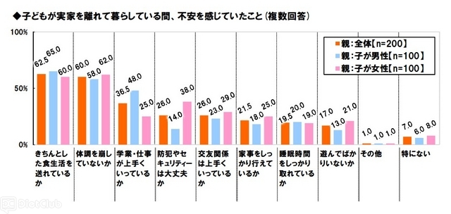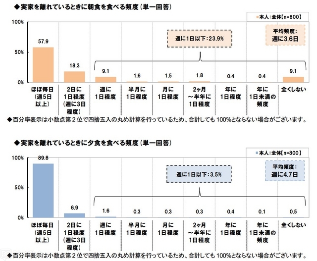 また、並行して、3年以内に子供が初めて実家を離れた35歳以上の男女200人を対象とした比較調査を実施し、合計1,000人の有効サンプルの集計結果を公開した。