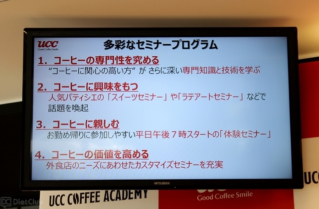 同発表会は、UCCホールディングスが、4月16日から東京・新橋にオープンする、コーヒーの複合施設「UCCコーヒーアカデミー東京」をアピールするために行われたもの。