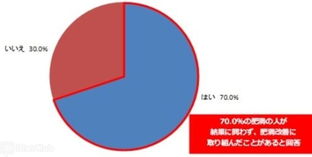 また、BMI値が25以上の肥満の人(500名)に、『結果に関わらず、肥満改善に取り組んだことはありますか?』と尋ねたら、70.0%の人たちが「はい」と回答した。