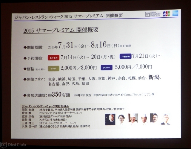 「ジャパン・レストラン・ウィーク 2015 サマープレミアム」の開催概要