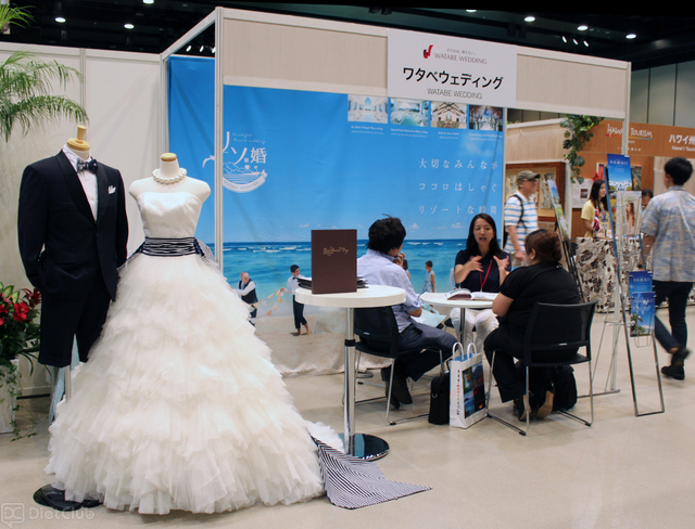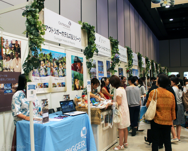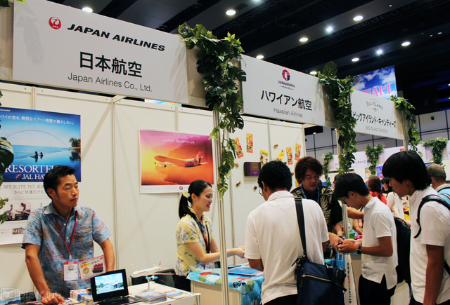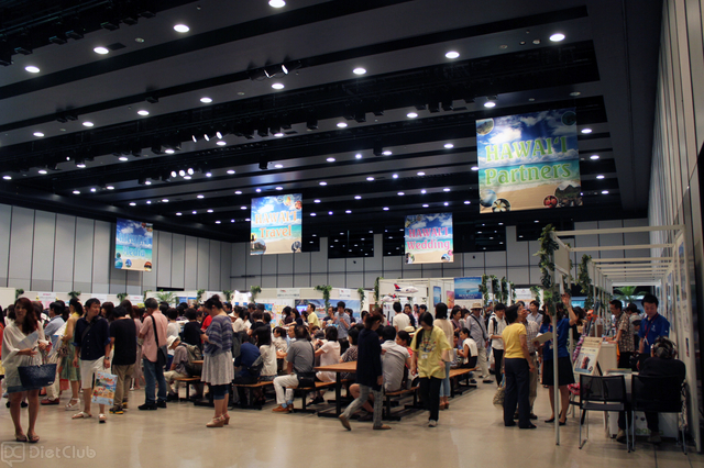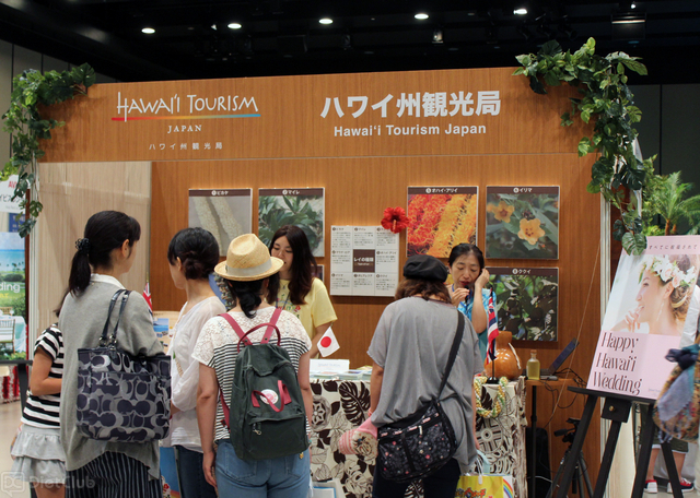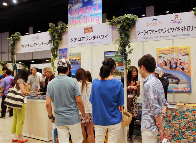 会場内には、全46社のハワイ関連企業がブースを出展。ハワイ州の観光スポットをはじめ、ハワイのホテル、エアライン、レンタカー情報のほか、ハワイでのウエディングプランを相談できるブースもあった。
