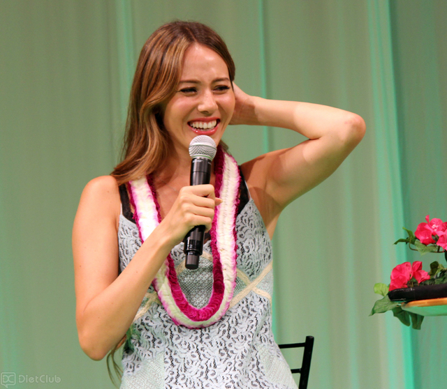 さらに道端は、ハワイならではの美容アイテムとして、ココナッツオイルをアピール。「歯を白くする効果があるのでオススメですし、コーヒーに入れるのもオススメです。ミキサーにかけるとオイルが乳化してミルクみたいになるし、飲んでも美味しいので試してほしいですね。髪に使うのもオススメです。シャンプー前に30分でも1時間でもつけて、シャンプーで洗い流すとベタつきは解消されますし、しっとりしますよ」と言い、ココナッツオイルの魅力を語っていた。