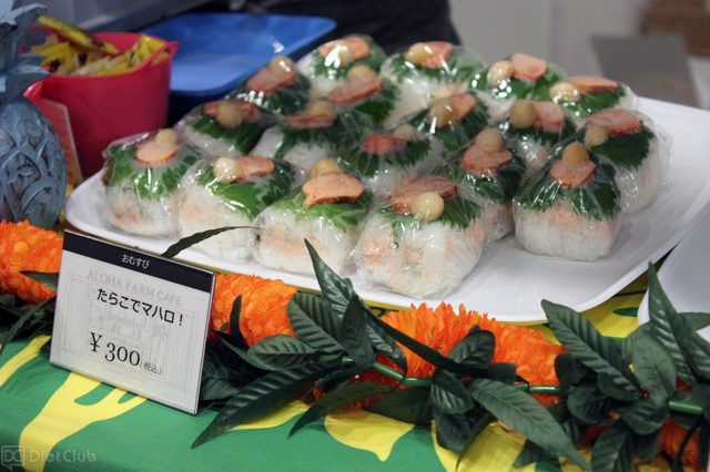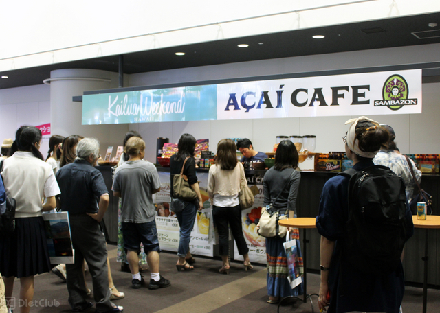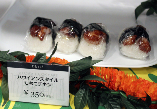また、バーカウンターエリアもあり、アサイーボウルやハワイ産パパイヤのスムージーを提供。さらに、飲食エリアでは、ガーリックシュリンプやケーキ、スパムむすびを購入することができた。