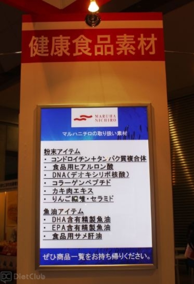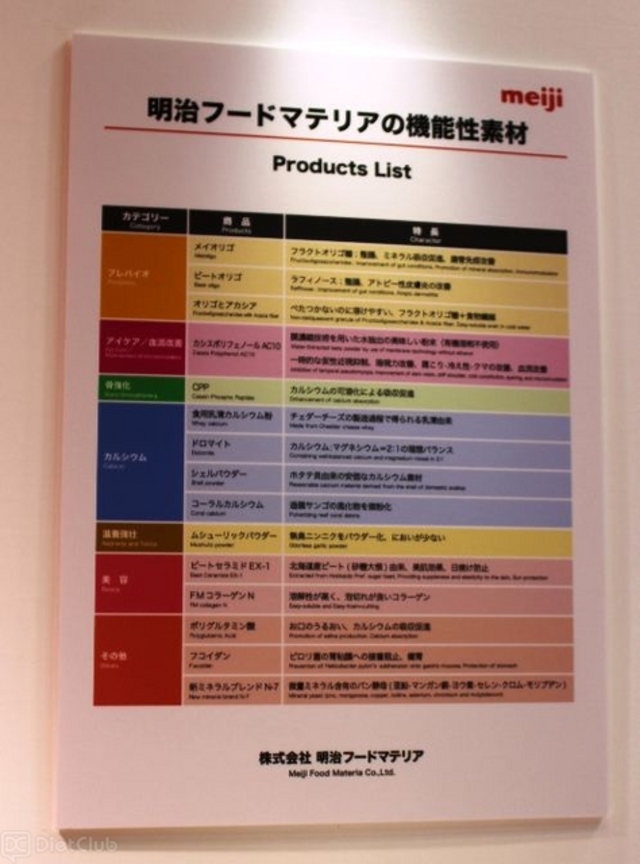 その中には、森永乳業や明治フードマテリア(明治グループ)など、大手企業のブースもあり、自社で取り扱っている機能性乳原料や機能性食品素材をアピールしていた。