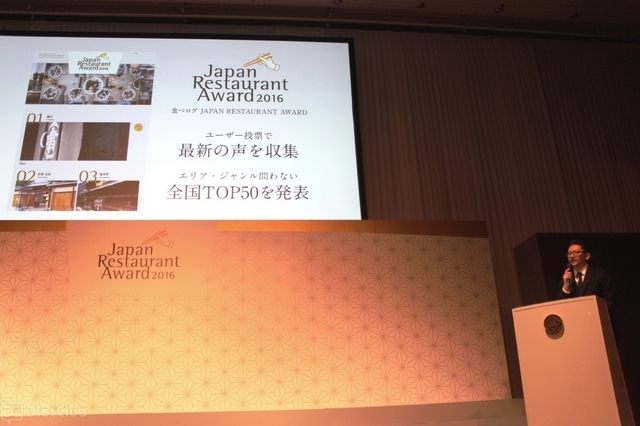 なお、「食べログ JAPAN RESTAURANT AWARD 2016」は、2015年6月~10月の“食べログ点数”をもとに受賞対象として470店をノミネートし、食べログユーザーによる、2015年に訪問したレストランの「味」に対する評価の投票結果を、ランキング形式で発表したもの。